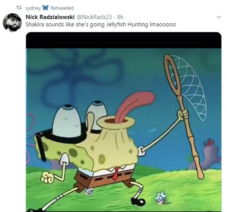 Перевод: Шакира издала такой звук, будто она приманивает медуз. (Скриншот из мультфильма про Губку Боба)