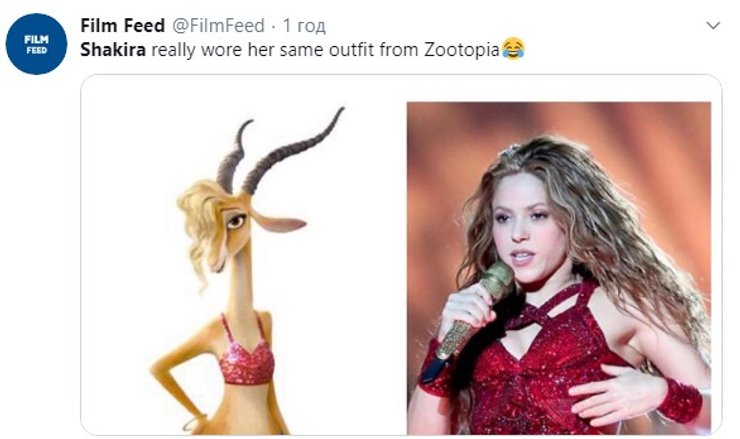 А некоторые отметили, что костюм для выступления Шакиры подозрительно напоминает костюм исполнительницы Газель, которую она озвучила в мультфильме "Зоотрополис".