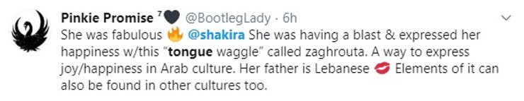 Позже в соцсетях пояснили, что это движение языком – традиционный способ выразить радость в арабской культуре (отец Шакиры - ливанец).