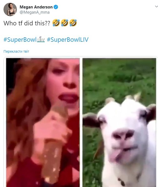 Перевод: Шакира высунула свой язык в перерыве финала и это будет следущим наибольшим мемом, попомните мои слова