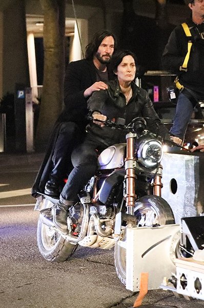 В сети появились первые кадры со съемочной площадки фильма "Матрица 4". Исполнители главных ролей Киану Ривз и Кэрри-Энн Мосс вместе с дублерами снимали сцены на мотоцикле ночью. Об этом сообщает Digitalspy.