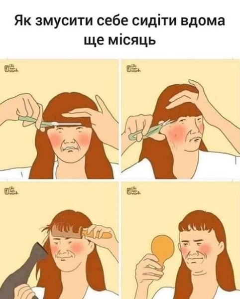 Также большой успех имеют шутки на тему всего запретного и вожделенного во время карантина. Как, например, закрытие салонов красоты. Теперь всем клиентам, что посещали их регулярно, нужно смириться, что раньше обозначенных сроков к парикмахерам и на маникюр им не попасть.