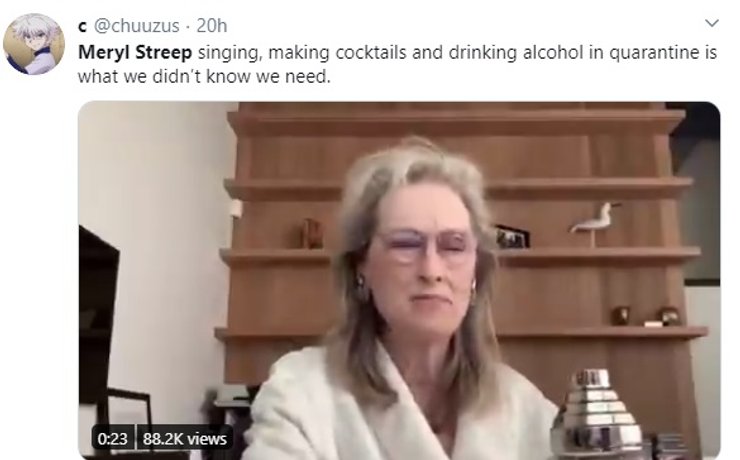 Мерил Стрип, смешивающая мартини во время видеоконференции, стала мемом