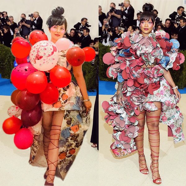 Оказалось, что, имея в распоряжении стратегический запас туалетной бумаги и старые газеты, можно создать наряд очень напоминающий произведение известного кутюрье, в котором та или иная звезда выходила на красную дорожку Met Gala.