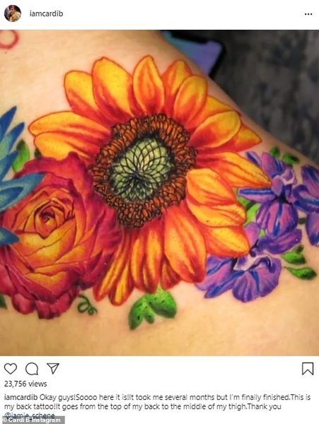 Известная хип-хоп исполнительница Cardi B (Карди Би) опубликовала у себя в Instagram фотографию новой татуировки, покрывающей спину и бедра американской звезды, пишет Daily Mail.