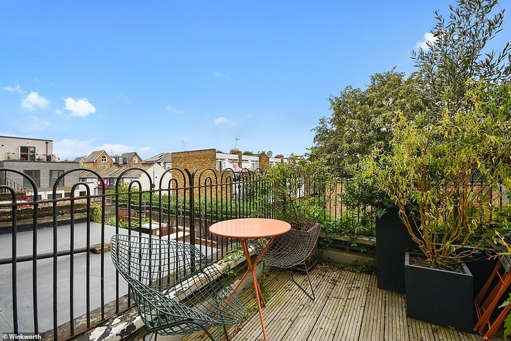 Не смотря на полтора метра ширины, в доме уместилось все необходимое: две спальни, причем в одну из них ведет люк, кабинет, гостиная, ванная комната, кухня с плитой, которая также отапливает весь дом, а также зеленый задний дворик и даже террасу на крыше.