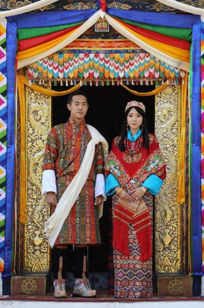 На двух официальных снимках пара запечатлена в национальных костюмах. Впрочем, все граждане Бутана обязаны соблюдать народную форму одежды, известную как Дриглам Намжа, пока находятся на публике в светлое время суток.