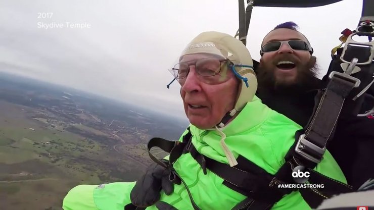 Американец Альфред Блашке в 103 года прыгнул с парашютом в тандеме с инструктором и стал самым возрастным спортсменом, решившимся на полет. По словам рекордсмена, на сегодня по статистике гораздо опаснее вынимать еду из автомата, чем прыгать с парашютом. Первый раз Альфред прыгнул в свой 100-летний юбилей и поклялся, что повторит авантюру, когда внуки-близнецы закончат колледж. Через три года, в июле 2020-го, он сдержал обещание и выпрыгнул из самолета на высоте 4267 м. Внуки прыгали вместе с ним.