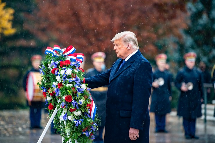 Также Трамп предпочел не произносить речь. Он стоял молча, пока играл гимн, а потом прикоснулся к венку во время минуты молчания.
