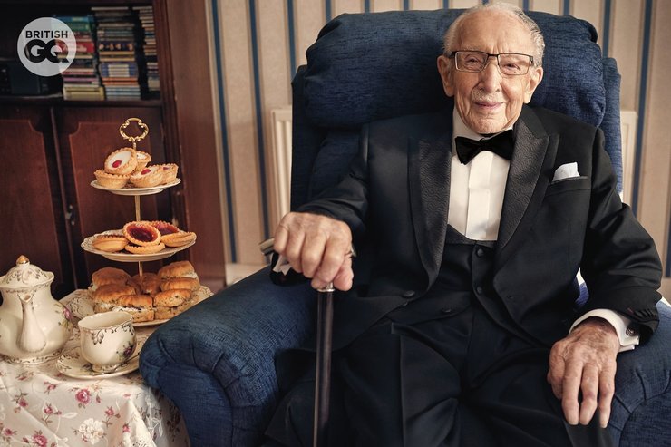 В апреле 2020 года, британский ветеран Второй мировой войны, капитан Томас Мур решил помочь благотворительным организациям NHS и обойти свой садик в Йоркшире 100 раз в честь грядущего столетнего юбилея. Ветеран рассчитывал собрать хотя бы тысячу фунтов, но слава о его поступке разнеслась по всему миру и Мур собрал более 32 миллиона фунтов стерлингов. Не мудрено, что именно его выбрали для обложки британского GQ.
