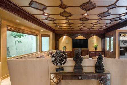 В имении есть семь спален, кинозал, бассейн с морской водой и джакузи.