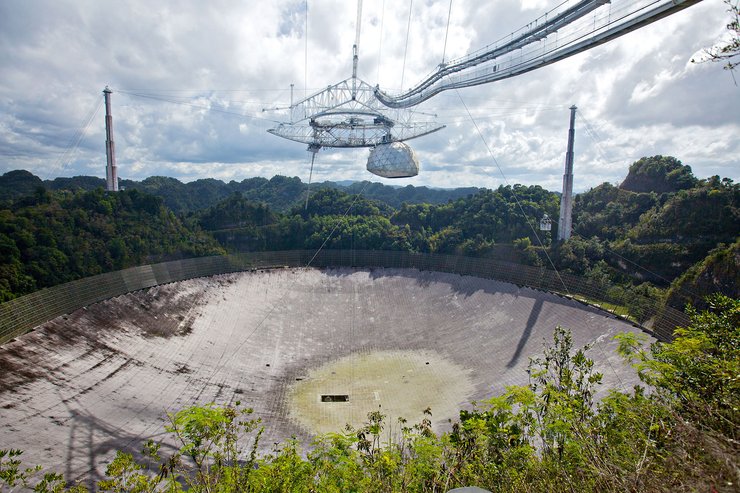 Но после урагана "Мария", который обрушился на Пуэрто-Рико в 2017 году, радиотелескоп был сильно поврежден: сломалась радарная антенна и пробила зеркало телескопа. В 2020 году оборвались два поддерживающих троса и разбили еще несколько зеркал.