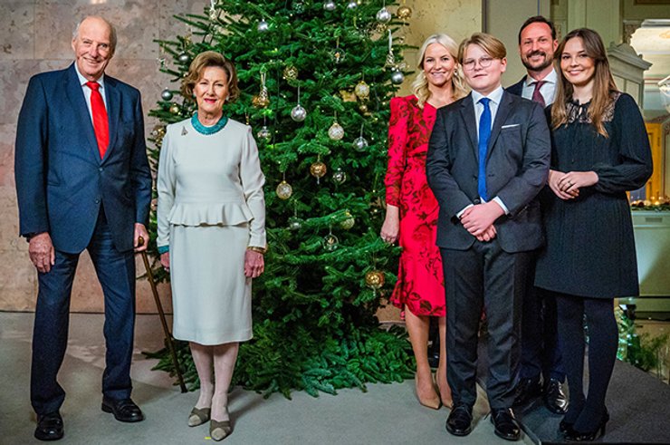 А на этой неделе к представителям королевской семьи Великобритании присоединись и другие монархи. Так, целую серию праздничных групповых снимков представили король Норвегии Харальд V и королева Соня и их сын кронпринц Хокон с семьей. На совместной рождественской открытке они позируют фотографу все вместе на фоне рождественской елки, установленной во дворце в Осло.