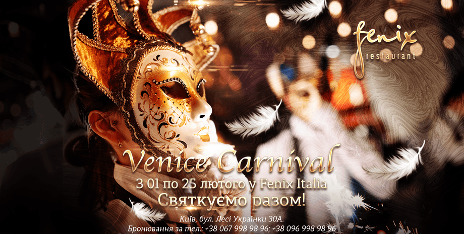 В італійській частині ресторану Fenix розпочалося святкування одного за найголовніших свят сезону. Гостей вітають леді й джентльмени в традиційних костюмах – задля атмосфери свята команда перетворилась на венеційських дожів, вельмож та знатних панянок в розшитих золотом та сріблом сукнях.