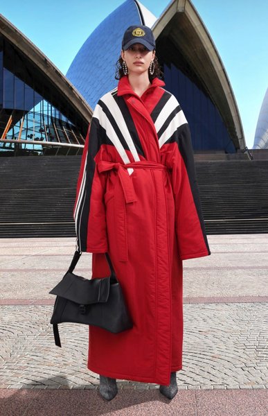 В коллекции сразу же бросаются в глаза нарочито подчеркнутые оверсайз-силуэты, объемные бомберы и спортивные костюмы, под которые, кроме кроссовой, дизайнер предлагает носить и каблуки, нейлоновые сапоги-чулки, платья в цветочек а-ля 80-ые, сумки, как у "челноков", объемные "дырявые" джинсы, искусственный мех и обувь с пальцами.