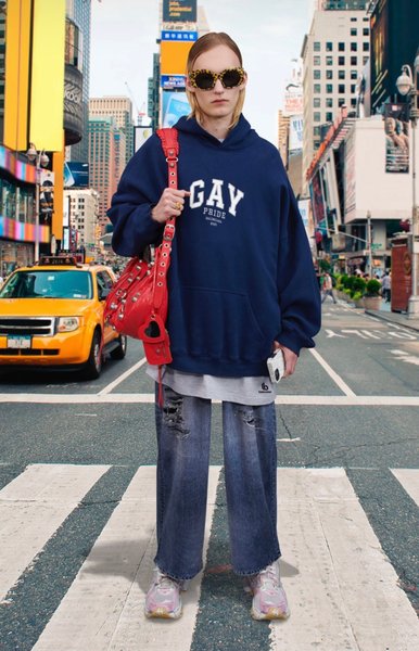 Не обошлось без намека на поддержку в сторону ЛГБТ-сообщества. Гвасалия предлагает в новом сезоне огромные худи, футболки с радужным флагом и надписью "gay".