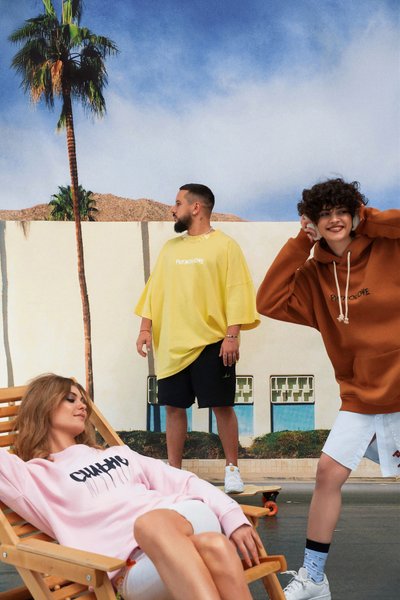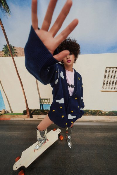 В лукбуке представлены вязанные кардиганы светлого и темного цветов, шорты с неоновым логотипом, купальники "Достопримечательность", удлиненные футболки, летние шапочки в пяти самых модных цветах палитры Pantone 2021, удлиненная рубашка с вышивкой.