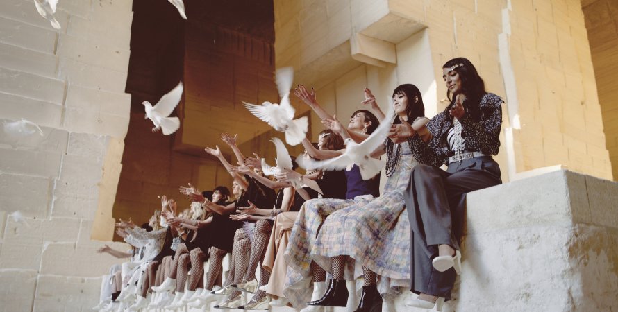 Демонстрация коллекции прошла в заброшенной каменоломне, где когда-то снимался фильм Жана Кокто "Завещание Орфея".