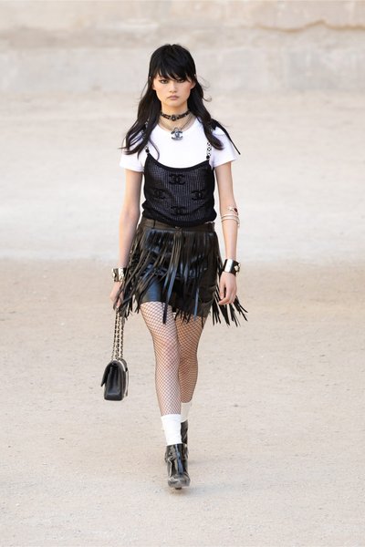 Креативный директор Chanel Вирджиния Виард черпала вдохновение в этой картине, которая вышла на экраны в 1960 году, и создала практически монохромную коллекцию, которую лишь немного разбавила другими цветами. На выходе получилось воплощение игры контрастов между 60-ми, роком и панком.