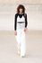 В коллекции преобладали платья с широкими лацканами, твидовые костюмы с жилеткой, вязаные накидки, широкие брюки, а также мини-юбки из твида, кожи, отделанные бахромой.