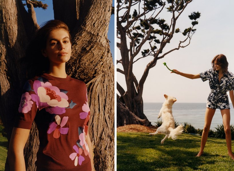Юная модель позировала в Versace, Tom Ford, Saint Laurent, Stella McCartney, Louis Vuitton, Alexander McQueen, Chanel, Dolce & Gabbana. Съемки проходили не только в студии, но и в Малибу, где Кайя живет со своими родителями и братом Пресли.