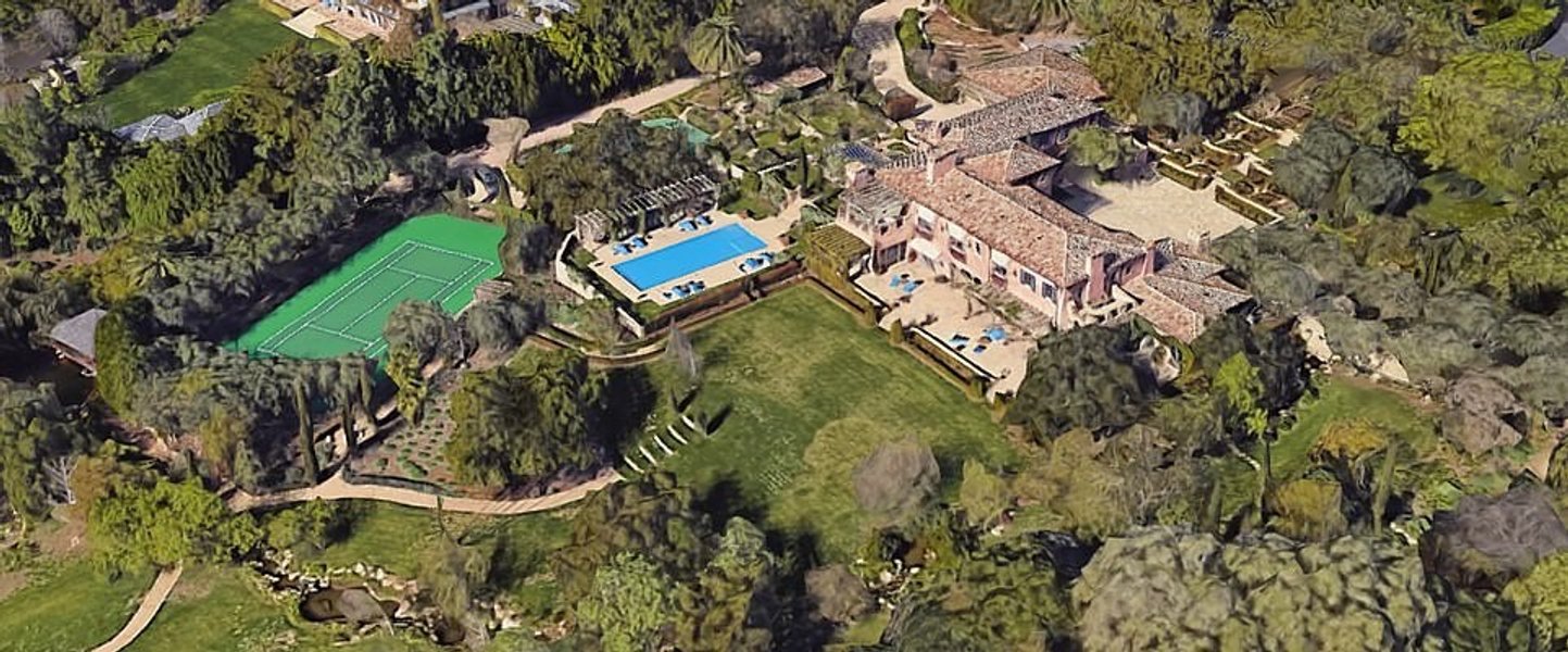 Поместье расположено на частной дороге в эксклюзивном районе Санта-Барбары, где проживают многие знаменитости.