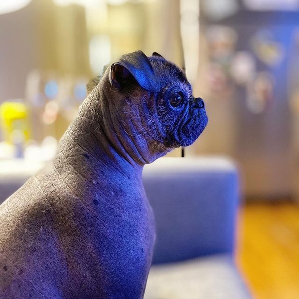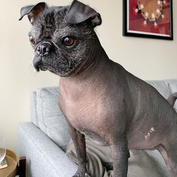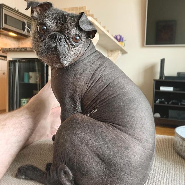 Если не считать лысого тела, Дороти – типичный мопс. Она всегда выглядит немного раздраженной, даже когда это не так.