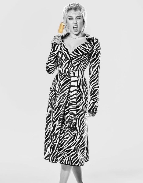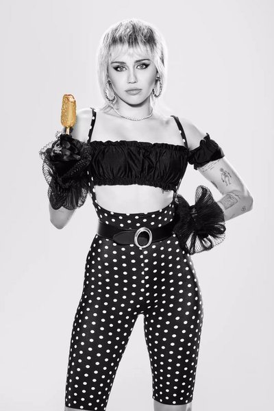 На своей странице в Instagram Сайрус поделилась кадрами анонса предстоящего мероприятия, выдержанными в монохромной гамме, а также показала несколько фото из рекламного кампейна, на которых позирует с мороженым.