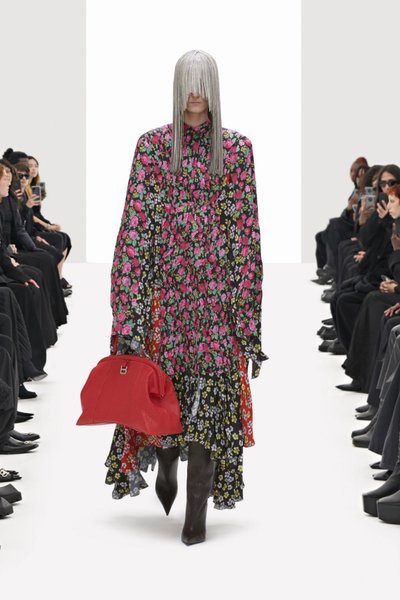В остальном в коллекции прослеживается традиционный стиль Balenciaga. В ней есть оверсайз-пуховики и пальто, лыжные куртки, спортивные костюмы, свободные платья с принтом, джинсы карго с логотипами и куртки с очень высокими воротниками. Самое интересное, что виртуальный показ открылся черной одеждой, причем в одном из костюмов зрители даже усмотрели отсылку к форме северокорейского лидера Ким Чен Ына, а завершился ярко-красным платьем-"русалкой", ставшем отсылкой к фильму "Розовый фламинго" 1972 года с дрэг-квин Дивайн в главной роли.