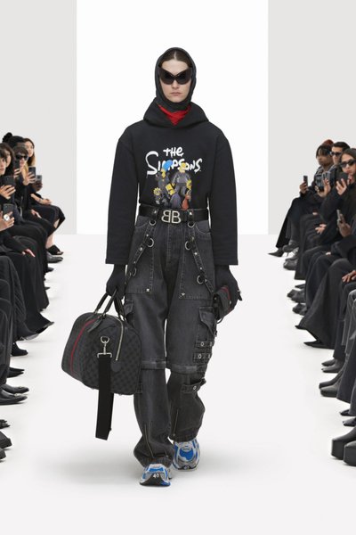 Еще одна необычность коллекции состоит в том, что модельер преподнес плагиат как художественный жест. Balenciaga "украл" классические формы сумок Gucci и переделал их с BB вместо GG, точно так же, как Алессандро Микеле воспроизвел узоры Демны и диагональный брендинг в своей последней коллекции. Ремень с пряжкой GG, бестселлер Gucci, также переделан с BB.