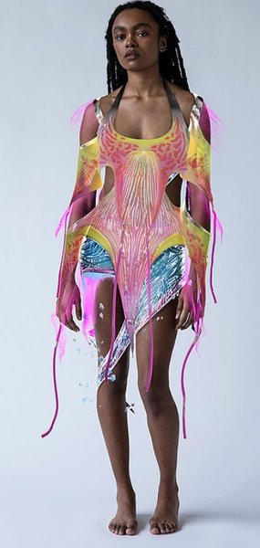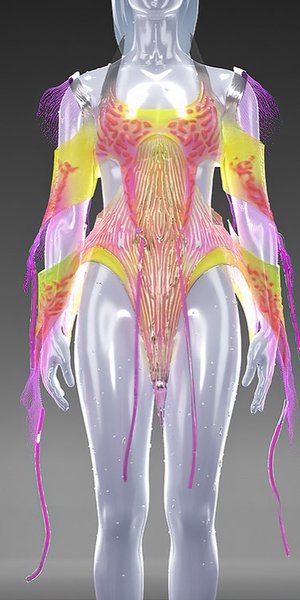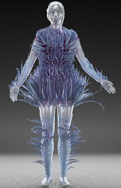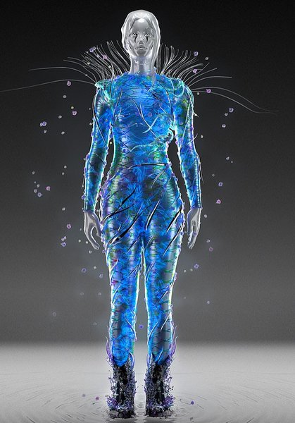 Эта полностью виртуальная коллекция, вдохновленная сочетанием природы и технологий, была представлена в виде фильма, однако ее примеряла реальная модель, и оформлена первым цифровым стилистом Auroboros Ситой Абеллан.