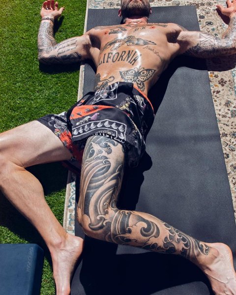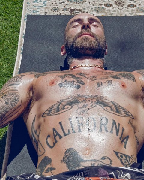 42-летний фронтмен группы Maroon 5 и один из самых знаменитых и богатых в Голливуде Адам Левин поделился в соцсети серией снимков, на которых занимается йогой, делая асаны, а также продемонстрировал свои знаменитые татуировки, в том числе и последнее "приобретение" – огромный рисунок океанских волн на левой ноге.
