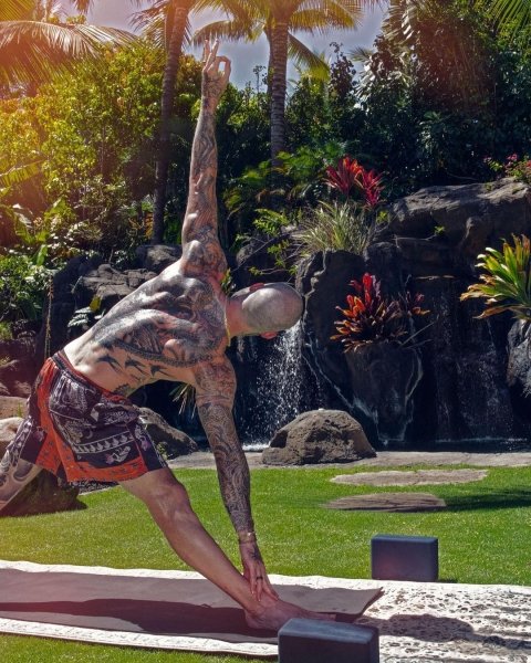 Тело-картина: солист Maroon 5 продемонстрировал тату, делая асаны