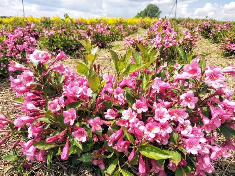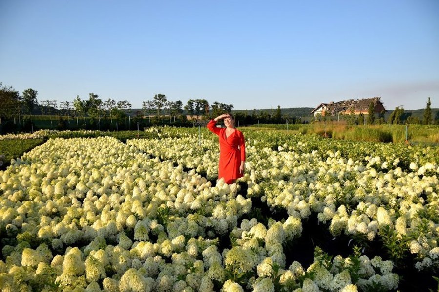Общая площадь полей – 17 гектаров, из которых гектар занимает лаванда, два гектара – цветущие растения, а все остальное – декоративные и цветущие растения (розы, спиреи, гортензии и др). Сейчас здесь цветут вейгелы, а уже в середине июля распустятся гортензии, поле с которыми также является самым большим в Украине. Что же касается даты открытия, то она выбрана не случайно и приурочена к началу цветения лаванды.