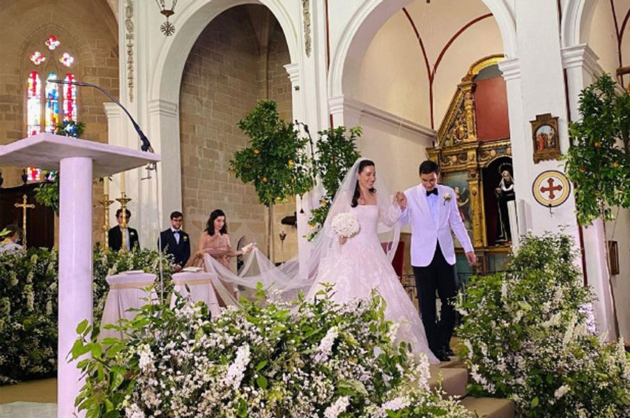 Пара произнесла клятвы в соборе XIII века на вершине старого города испанского острова.