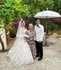На невесте было роскошное кружевное платье от Valentino с пышной юбкой и длинными рукавами. Жених нарядился в белый смокинг, который украсила бутоньерка.