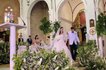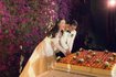 По словам инсайдеров, проход к алтарю был украшен белыми цветами. В рамках церемонии выступили местные певцы, а венчание закончилось зажигательным танцем, к которому присоединились молодожены.