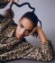 Во время фотосессии Кунаки появилась в черном комбинезоне, такого же цвета полупрозрачном платье, куртке с леопардовым принтом и эффектном красном наряде, драпировка на котором напоминала розы.