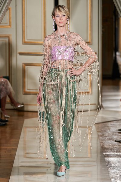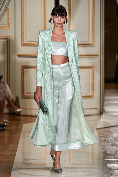 В коллекцию вошли и около 15 вещей из январского показа Privé, который из-за пандемии проходил без зрителей. Дизайнер хотел, чтобы люди увидели их поближе, и потому что высокая мода — это образец постоянства.