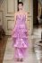 Джорджио использовал для коллекции яркие цвета, превратив оттенки и текстуры в модные, строго ярусные платья, добавив грандиозные акценты, такие как розовая, инкрустированная перьями накидка из шелковой органзы или сиреневый жакет с вышивкой по краям.