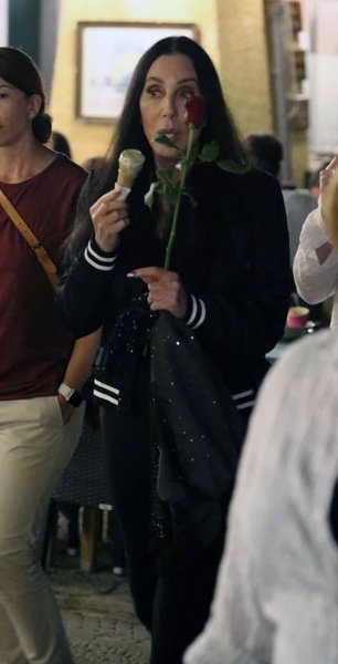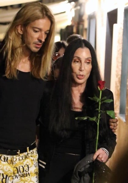Однако более интересным был спутник знаменитости. Артистку сопровождал высокий молодой мужчина с длинными светлыми волосами. Они с Шер шли, обнявшись, и о чем-то разговаривали, а в руках звезда держала красную розу.