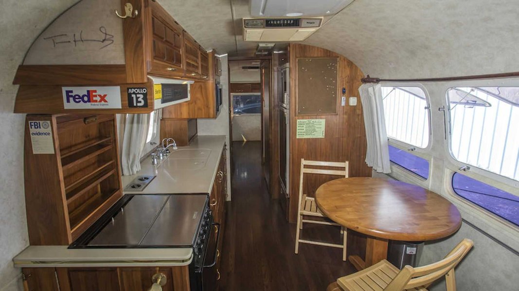 Мебель в доме на колесах включает диван на съемных ножках, электрокамин, обеденный стол, стулья и шкафы. Также есть кондиционер и немало вещей, которые знаменитый актер считает своими любимыми сувенирами. Среди них, например, кружка "Аполлон-13", подписанная Хэнксом и его партнерами по эпическому фильму Гэри Синизом, Биллом Пакстоном и Кевином Бэйконом, и его любимая кофеварка.