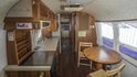 Фасад трейлера служит гостиной с электрическим камином и вышеупомянутым диваном. Небольшая обеденная зона со столом и стульями находится напротив кухни, и вся мебель включена в стоимость продажи.