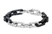 Толстые керамические булавки протыкают свитера, отражая массивные цепочки, подчеркивающие форму двухцветных украшений, и свисают с глянцевых мягких сундуков и дорожных сумок.