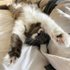 Несмотря на то, что ее кличка переводится как Толстушка, Табби на самом деле животное некрупное и не прожорливое: кошечка любит курятину и равнодушна к кошачьим кормам.