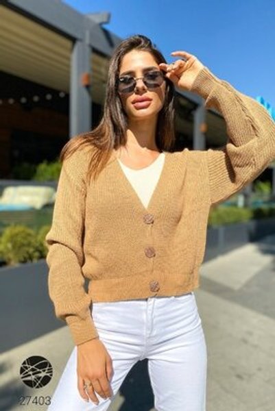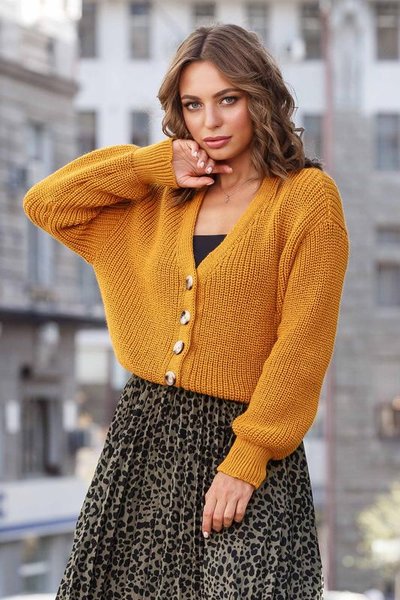 Такой кардиган больше похож на кофту из трикотажа. Выбирая этот фасон, следует учитывать, что вещь должна быть приталенной. Короткий кардиган с пуговицами отлично будет смотреться на рубашке, тонком гольфе, водолазке или блузке. Он подойдет как для повседневного образа с джинсами, так и для выхода в люди. В таком случае под него можно надеть пышную юбку. Также стилисты рекомендуют обратить внимание на укороченные кардиганы. Вещи ярких цветов и крупной фактурной вязки станут отличным дополнением осеннего гардероба.