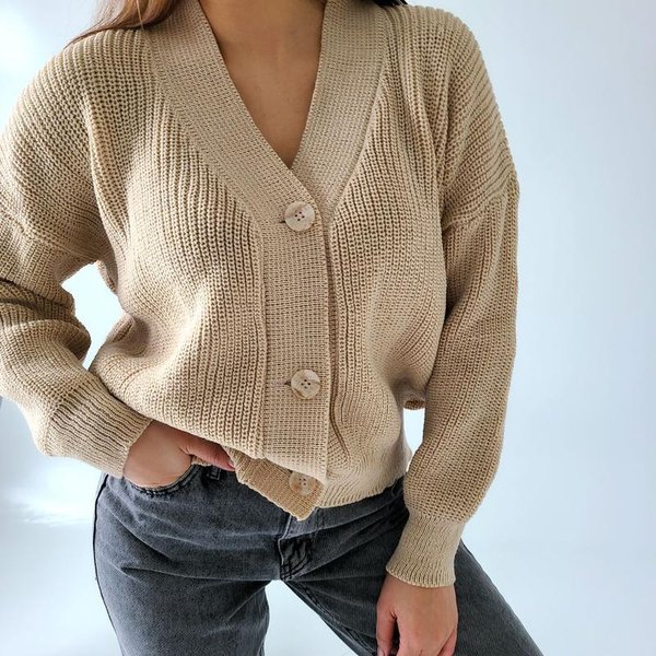 Вещи на несколько размеров больше – тренд последних сезонов, и модные кардиганы 2022 – не исключение. Осенью популярными будут кардиганы оверсайз средней длины с подвернутыми рукавами, которые будто спадают с плеча. Кроме того, неплохо будут смотреться модели с рукавами-фонариками или по типу "летучая мышь". Кардиганы могут быть как с крупными пуговицами, так и вовсе без них, либо же на молнии.