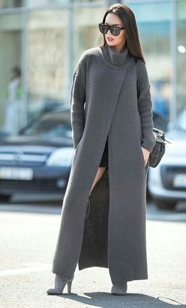 Как правило, такие кардиганы длинные или средней длины. Эффектно смотрятся кардиганы-пальто с меховой отделкой. Они могут быть с пуговицами, на молнии или же без них.