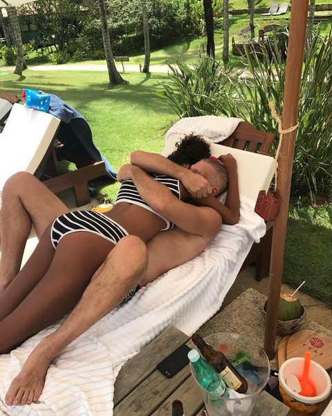 На некоторых кадрах она прижимается к мужу во время совместного отдыха на пляжах Бразилии. На других снимках она находится в объятиях супруга. Есть тут фото и со свадебной церемонии, которая состоялась в небольшом городке на юго-западе Франции.