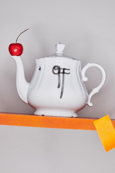 По словам Абло, изначально на чайниках и блюдцах была золотая канва, но затем ее решили убрать.